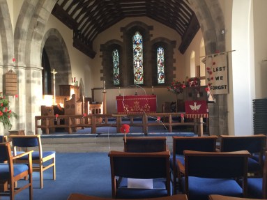 Joe clearly found entering the church hard; he had so many conflicting memories. But I was proud of him – he looked at the displays before going outside to read. Amos showed me the poppy he had made (he picked it out, first time, from a group of around fifty almost identical poppies! – how can they do that?), Melody showed me the lantern she helped to make, and Peta took me through her Guide display showing how the newly formed Guide movement helped the war effort. A brief description of each of the eight men who died were on display along with photographs of the war graves. We watched film projected onto the wall of men marching, wading through mud, crouching in trenches beneath the smouldering skeletons of trees. And there were the perspex outlines I mentioned of people no longer there, sitting silently in the pews, helmets and poppies on the seat next to them. I tried to explain to the children without making it too horrific; they have time enough to learn – they have been given that privilege, not to have to comprehend the terror of war at an early age. Knowing boys lied about their age and went to war as young as Joe, brings home that privilege.