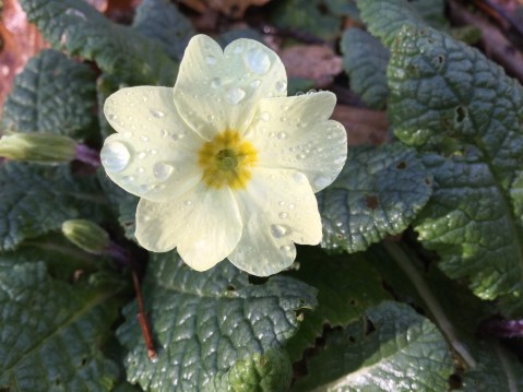 When I park, I have to park the car at an odd angle because there’s a smashed beer bottle in the parking area and I’m scared I will puncture my tyres. Then I panic I have no phone, and if I do get a puncture, I won’t be able to let anyone know and my children will be stranded on the school bus. I resolve to leave the wood early, then if I do have a puncture, I will have time to walk to a nearby farm to phone Mark before the children come home. I am half way up the road towards the wood before I even notice; I stop and look around me in amazement – it is an absolutely stunning early-spring morning. The sky is a perfect blue, skimmed with the lightest of white cloud. The sun warms my bare arms and beams down on the hedgerows making the ivy shine out, wonderfully green. Now nature has my attention. I see tiny puffs of new leaf in tangled brown ropes of old man’s beard, dog violet and lesser celandine add bursts of colour to the verge, and the new horse chestnut leaves are breaking out of huge swollen buds on twigs that reach almost down to the road.